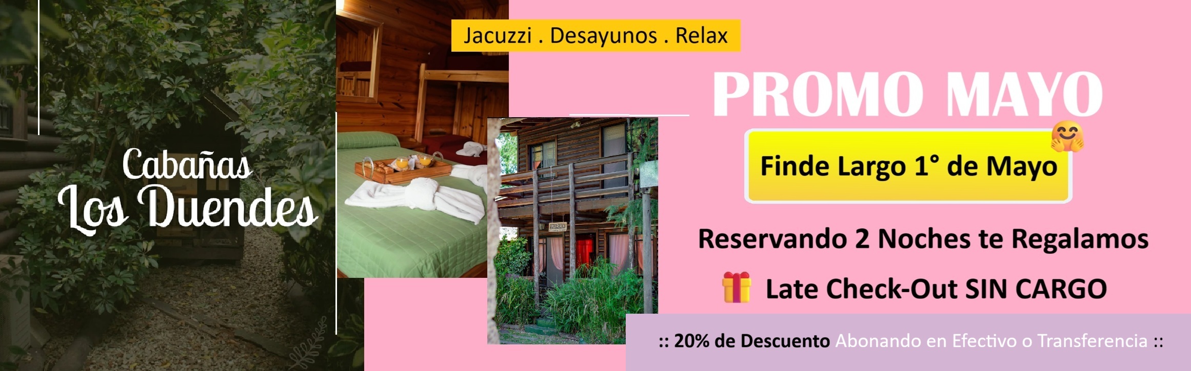 El complejo cuenta con 13 cabañas de las cuales 3 están construidas totalmente en tronco, dandole de esta manera un estilo